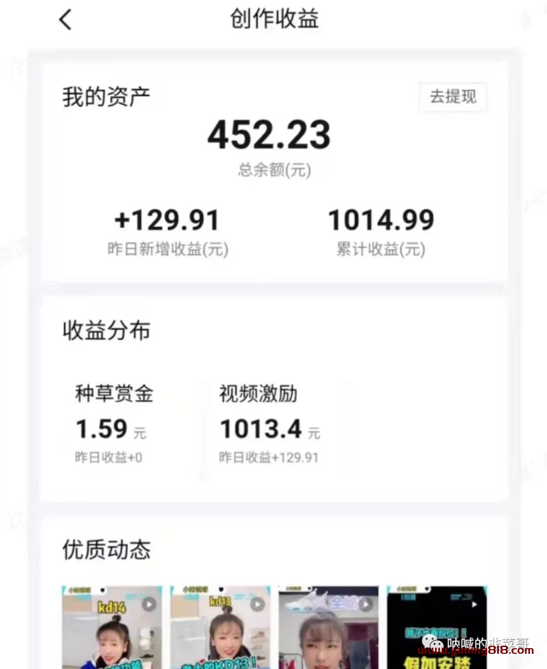这时候把平台送你的曝光券陆续使用,这流量就嘎嘎开始冒起来了!有了收益以后,后面每天花点时间搬运三个作品发出去即可。![图片[3]-项目分享:冷门项目得物搬砖,单日100+-一鸣资源网](https://www.yiming818.com/wp-content/uploads/2022/03/1ecc96bdf813.jpeg)