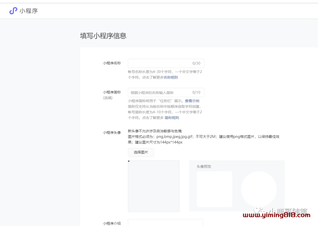 ⑨填写小程序名称、小程序简介、小程序头像、小程序介绍(用户搜索小程序名称进入时可以看到)![图片[13]-副业项目之小程序源码去水印月入1000-一鸣资源网](https://www.yiming818.com/wp-content/uploads/2022/03/05428d548baf.png)