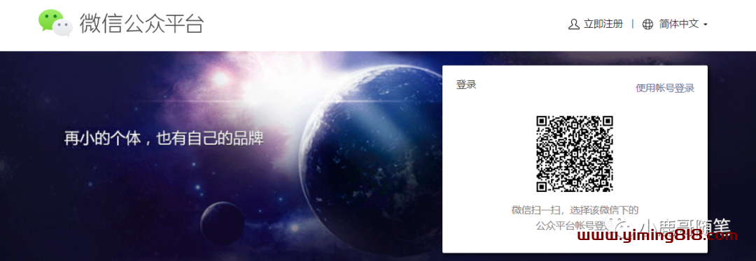 ①第一步,找到微信公众平台地址打开,在顶部找到注册功能。