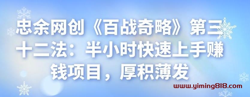 忠余网创《百战奇略》第三十二法:半小时快速上手赚钱项目,厚积薄发