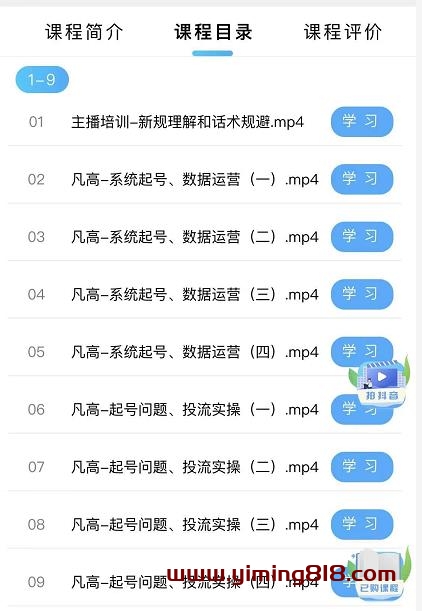 凡高直播带货入门课:直播带货常见问题、起号与投流、新规后的主播话术调整源一鸣2022年3月18日 09:25更新关注私信644 凡高直播带货入门课:直播带货常见问题、起号与投流、新规后的主播话术调整 课程内容: 此处内容已隐藏,请付费后查看 相关文章: 从0-1学习巨量千川,后台设置实操,直播带货篇,新手小白入门千川必听课 直播带货主播养成记,从0-1数据说话,直播带货人、货、场策略,结果导向 直播带货(私人教练),实操实战教学,通俗易懂,学完后新手小白一个人也能做带货 李扭扭直播带货实战课,超硬核的直播带货课,零粉丝快速引爆抖音直播带货,让普通人做直播带货更简单 直播带货从0到1,5小时课程解决起号问题!助你选品、破流量、提升主播技能! 凡高直播带货入门课:直播带货常见问题、起号与投流、新规后的主播话术调整此内容为付费阅读,请付费后查看R币1 限时特惠 欲购从速R币98年费会员免费终身会员免费立即购买您当前未登录!建议登陆后购买,可保存购买订单付费阅读已售 100© 版权声明 文章版权声明 1、本网站名称:一鸣资源网 2、本站永久网址:https://www.yiming818.com 3、本网站的文章部分内容可能来源于网络,仅供大家学习与参考,如有侵权,请联系站长QQ108898998进行删除处理。 4、本站一切资源不代表本站立场,并不代表本站赞同其观点和对其真实性负责。 5、本站一律禁止以任何方式发布或转载任何违法的相关信息,访客发现请向站长举报 6、本站资源大多存储在云盘,如发现链接失效,请联系我们我们会第一时间更新。 THE END会员项目副业项目# 直播带货# 凡高 收藏