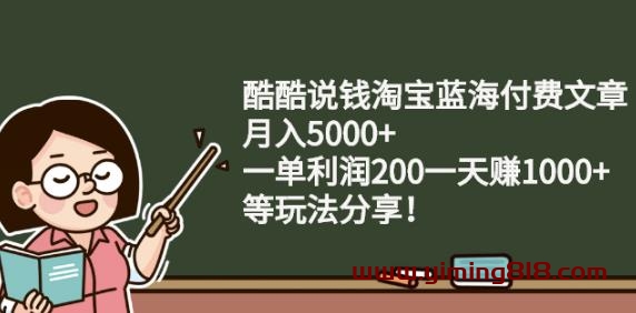 酷酷说钱淘宝蓝海付费文章:月入5000+一单利润200一天赚1000+(等玩法分享)