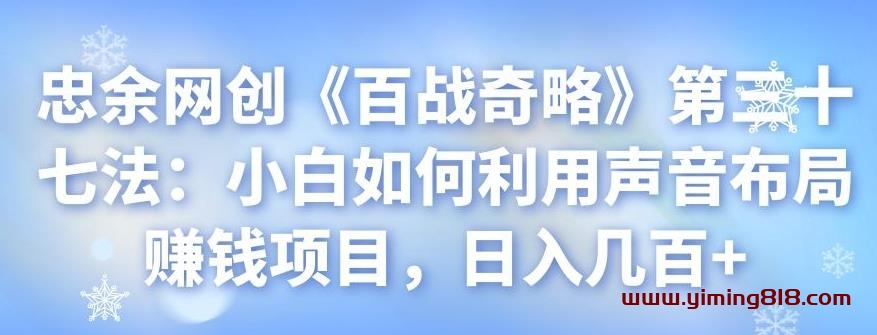 忠余网创《百战奇略》第三十七法:小白如何利用声音布局赚钱项目,日入几百+源一鸣2022年3月21日 10:06更新关注私信823 忠余网创《百战奇略》第三十七法:小白如何利用声音布局赚钱项目,日入几百+ 下载地址: 隐藏内容,请登录后查看 相关文章: 忠余网创《百战奇略》第十七法:新手快速做好抖音,无脑日赚几百+ 忠余网创《百战奇略》第十四法:抓住热点风口赚钱项目,快速布局大盘 忠余网创《百战奇略》第十法:零基础新手快速进入抖音占领一席之地 忠余网创《百战奇略》第四十一法:蓝海项目细分领域,日收益200-300+ 忠余网创《百战奇略》第四十七法:无人直播,批量放大化操作式收益模式 © 版权声明 文章版权声明 1、本网站名称:一鸣资源网 2、本站永久网址:https://www.yiming818.com 3、本网站的文章部分内容可能来源于网络,仅供大家学习与参考,如有侵权,请联系站长QQ108898998进行删除处理。 4、本站一切资源不代表本站立场,并不代表本站赞同其观点和对其真实性负责。 5、本站一律禁止以任何方式发布或转载任何违法的相关信息,访客发现请向站长举报 6、本站资源大多存储在云盘,如发现链接失效,请联系我们我们会第一时间更新。 THE END免费项目副业项目# 忠余网创 收藏