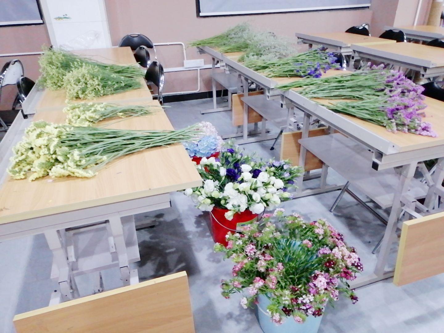 原材料准备,找当地花商订了花材,网上购买包装纸丝带,脑壳疼
