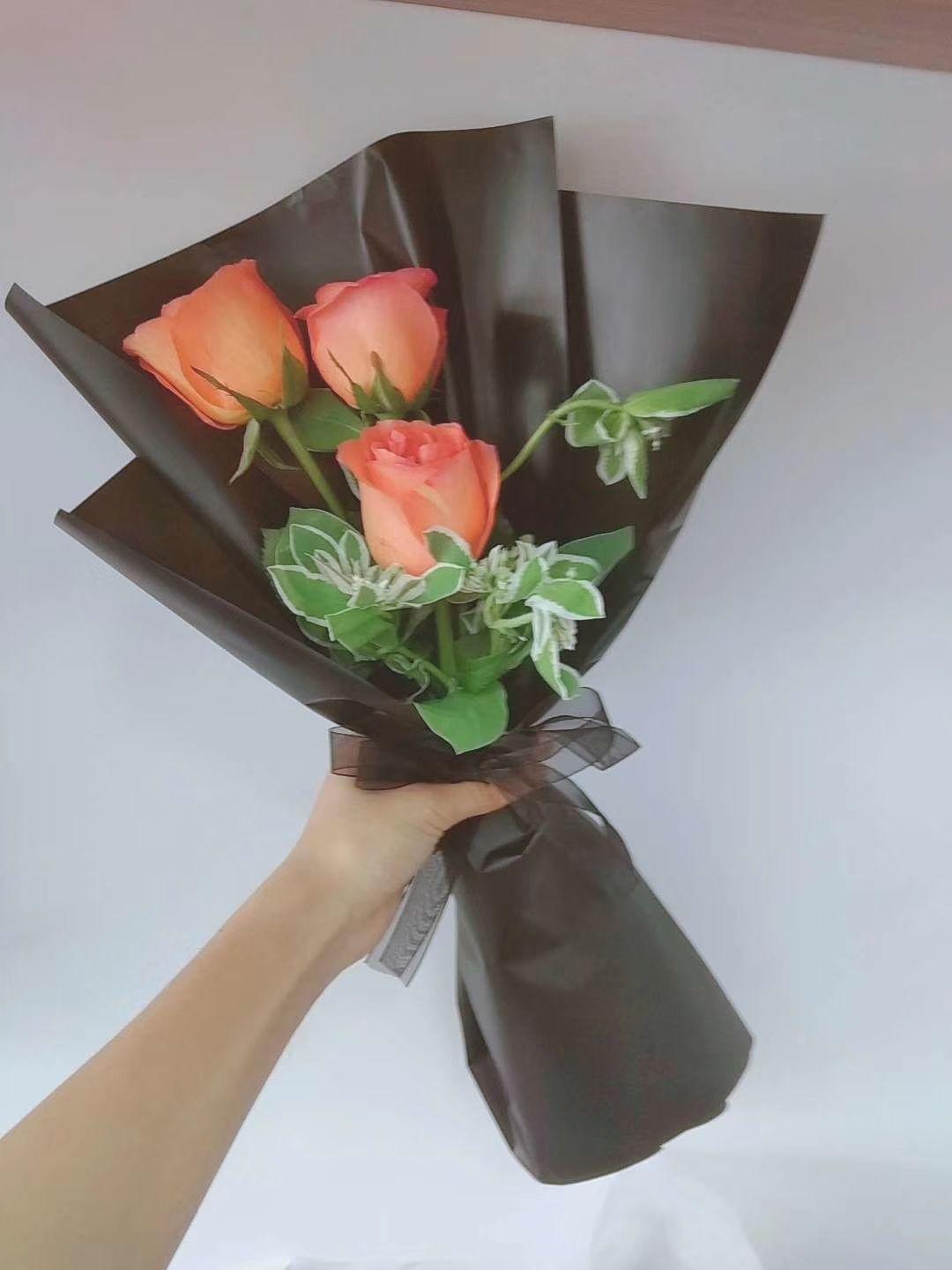 红玫瑰搭配黑色包装纸很高贵的感觉