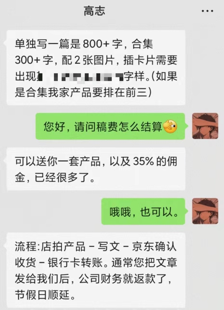 她是某电商公司的运营,在知乎发现写的文章符合它们公司的要求,就联系了答主,后来我们就长期合作了。