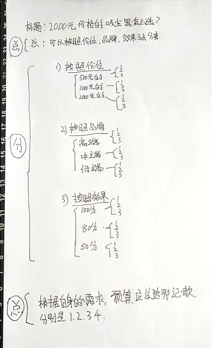 第一步:开头告诉读者,选购吸尘器要考虑的几个维度是「价格、品牌、效果