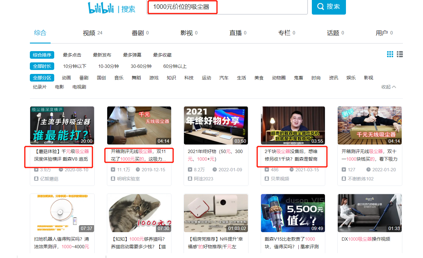 怎么做调研? 某站是个好去处,有很多博主都整理好了吸尘器的测评,看个 4-5 条,你就能建立起对吸尘器的认知。(空调、手机、投影仪、这些商品都可以这么搞)