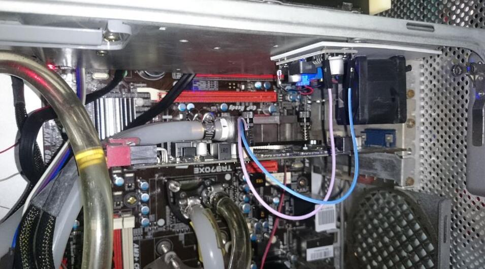 水箱部分就完成了。接着完成显卡部分,显卡用的水冷头只能覆盖核心部分,mos管部分还是挺热的,需要增加一个风扇散热