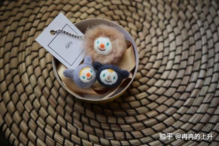最早我做的羊毛毡就是下图中的挂饰,以球形为主,现在再看感觉当时的成品戳制还不够扎实,表面有一些不够平整的地方。