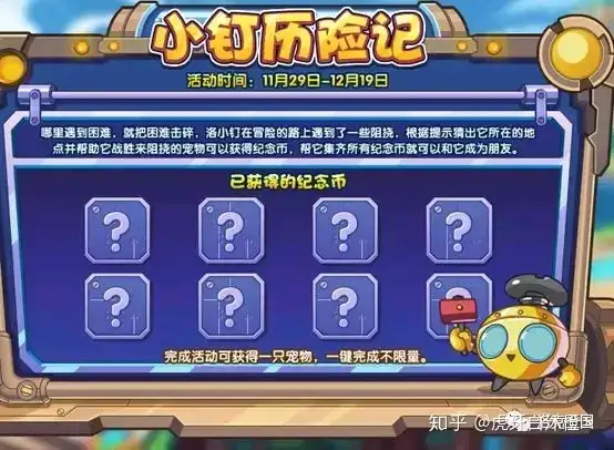 还有,最近洛小钉在冒险的路上遇到了一些阻挠,根据提示猜出它所在的地点并帮助它战胜来阻挠的宠物可以获得纪念币,帮它集齐所有纪念币就可以和它成为朋友。快去帮帮它吧!