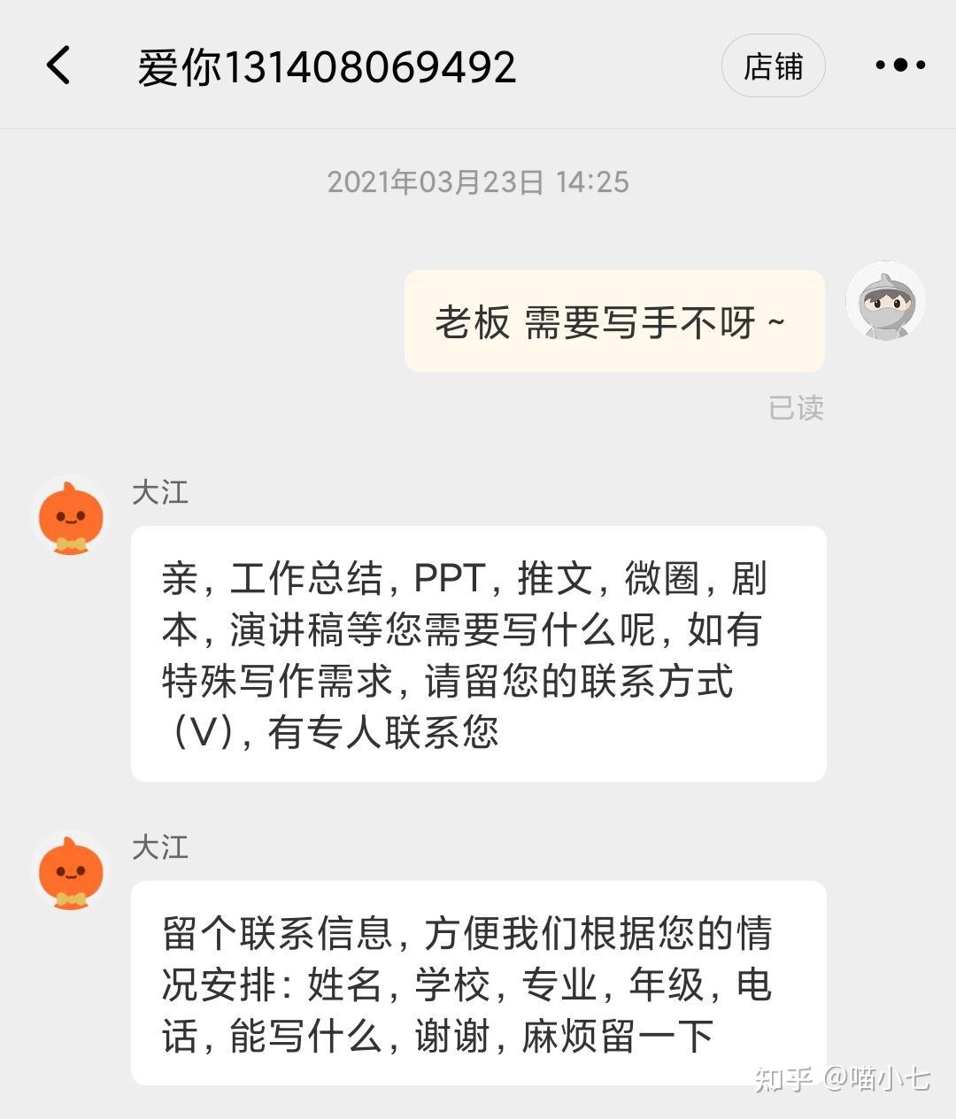 你到淘宝去搜索文章代写,一大堆淘宝店供你选择。你就挨个私聊(见图),准能找到。