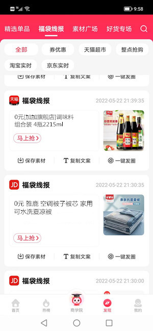 大家看看上面几张图就知道了,相同的一个宝贝,他们的内部天猫优惠券基本是相同的,就是返的力度不一样,福袋生活返最高。所以我们优先选择福袋生活。毕竟返的最高。