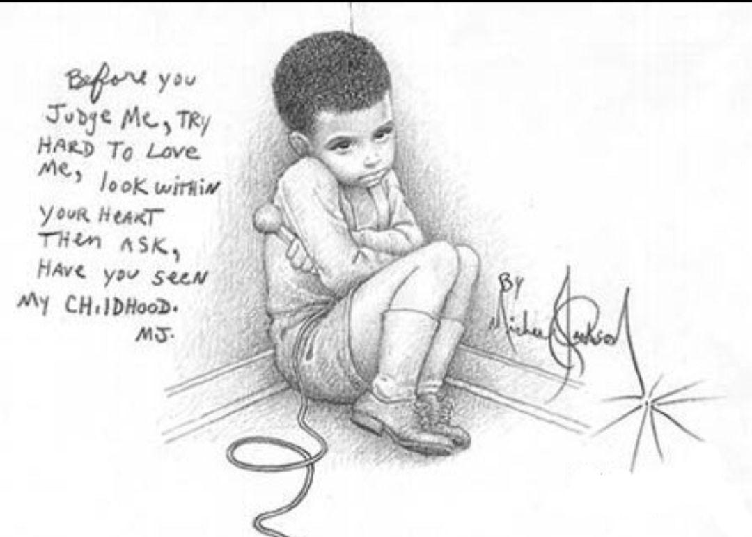 后来一直听jackson5的歌(是的没错,那个时候对大人的迈克尔是普通喜欢,毕竟那时候才几岁喜欢黑黑的小杰克逊,喜欢他的ben和III be there),那时候还不是太懂欣赏他的舞蹈,只知道他的太空步很惊人,喜欢他的moonwalk和小朋友们在一起的那个MV,其实不算一个铁杆的粉丝。直到他去世时候,读初中的我,终于懂得以全方位了解他的种种,他是多么才华横溢和善良啊,他画过一个躲在角落蜷缩的小男孩,那就是他,失去童年的little boy,所以他后面才会如此努力弥补缺憾,去爱他的孩子,并且老吾老以及人之老,幼吾幼以及人之幼地去建了Neverland吧……
