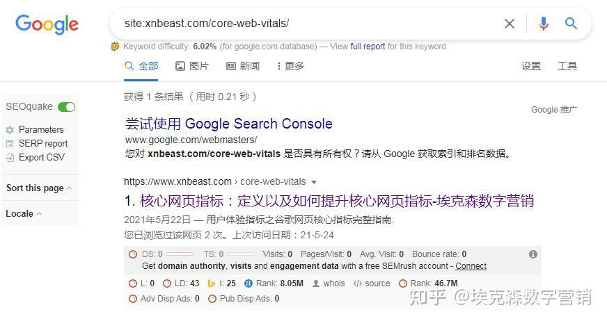 例如,利用这个命令查看一下埃克森数字营销跟外贸网站和SEO这两个内容的相关性。