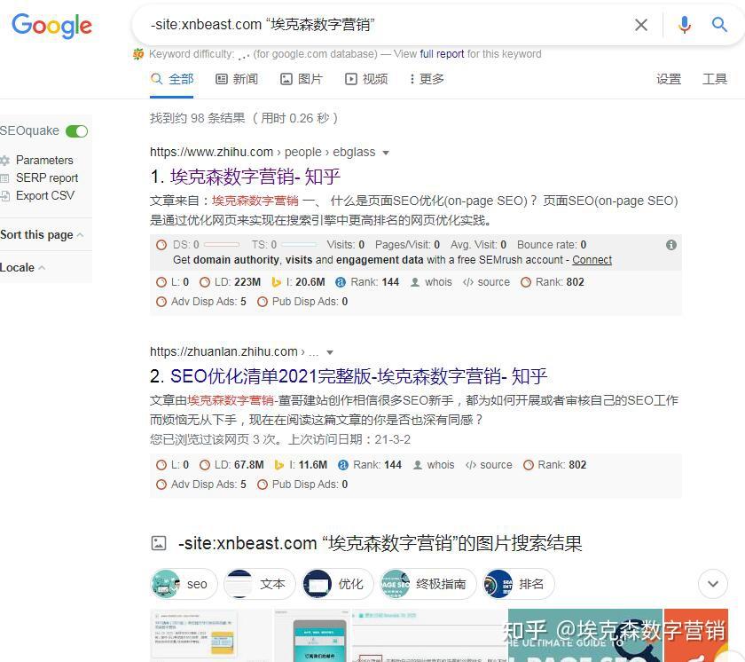 site搜索法可以查询网站上的重复内容。可以使用搜索命令-site:xnbeast.com+内容。就可以查到你的网站内容有没有被分享或者剽窃。 例如:-site:http://xnbeast.com “埃克森数字营销”