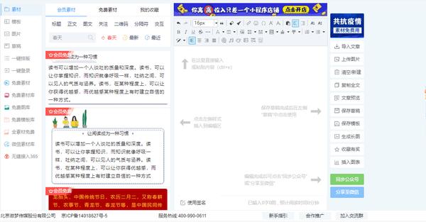 特色:终身会员便宜、文章模板多且好看、基本功能全面、有公众号内嵌插件、上手容易