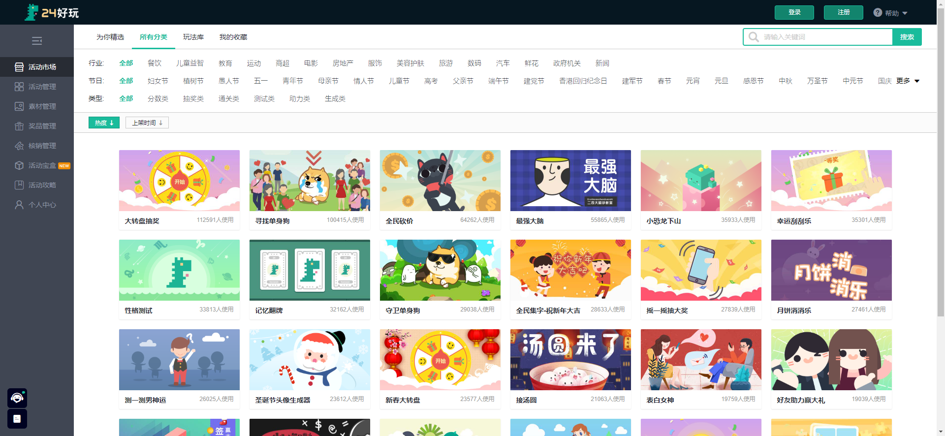 微信上各种常用的营销手段都在这里,什么砍价、转盘抽奖等等玩法