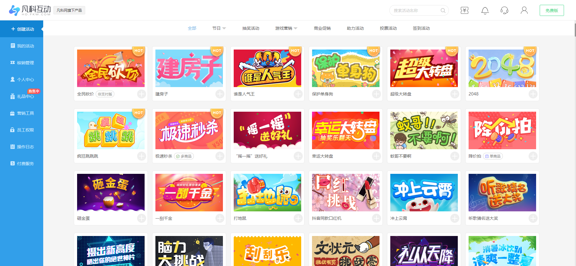功能相当强大的凡科互动,涵盖微营销各类工具,从小游戏到H5,应有尽有,相对于易企秀而言,凡科微传单互动效果更强,动画更酷,界面更炫。