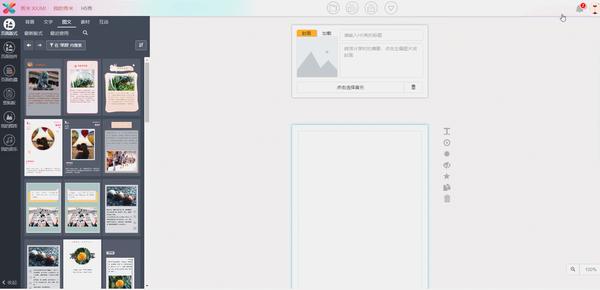 优点:便捷的自定义功能、界面简洁、专一的小清新素材、支持手机排版、可以制作H5场景