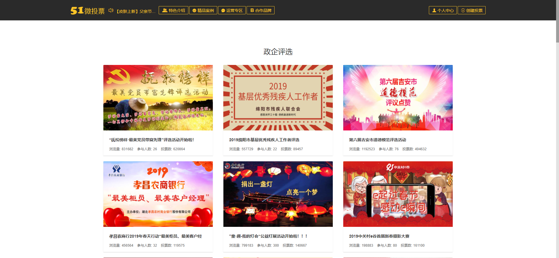 51投票功能与有投票大同小异,其实他家界面模板更美观、背景音乐功能免费,活动规则不支持微信粘贴复制,但是免费账户流量较小才50000,很容易用完,当你遇上刷票狂魔的时候你就明白50000流量有多少,建议参赛选手10人以下的选择此平台。