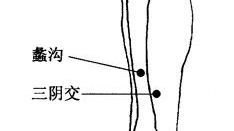 位置: 位于小腿内侧、足内踝尖上5寸,骨内侧面的中央。