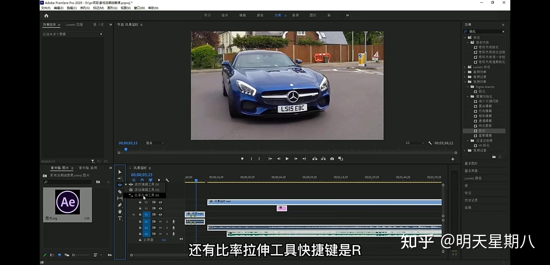 d.倒放:利用比例拉伸,在持续时间中选择倒放就好。