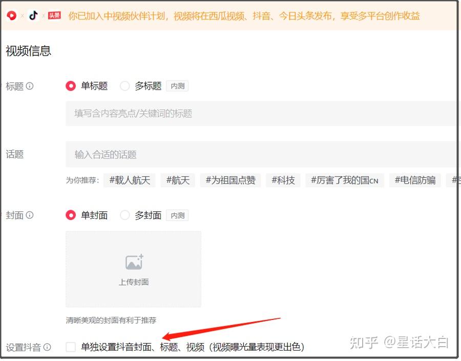 此外,在“西瓜视频”的后台,通过“中视频伙伴计划”发视频的时候,可以把一个横版视频,拆分成3个竖版视频同步到抖音。