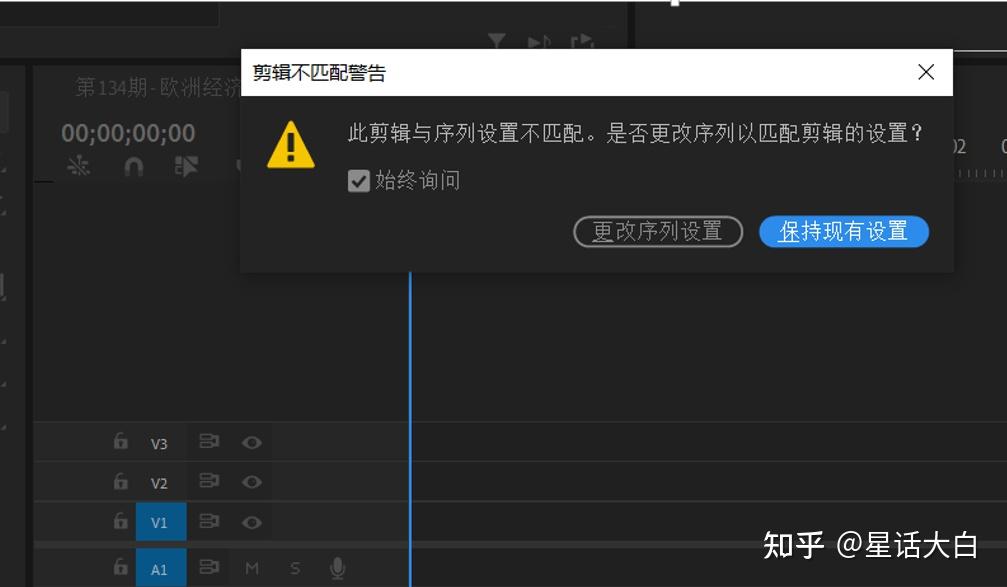 我们点“保持现有设置”就行,因为不需要更改序列设置。