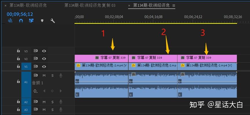 在分割成3个后,我们去左侧的项目区,点中这个序列,然后右键点击复制。