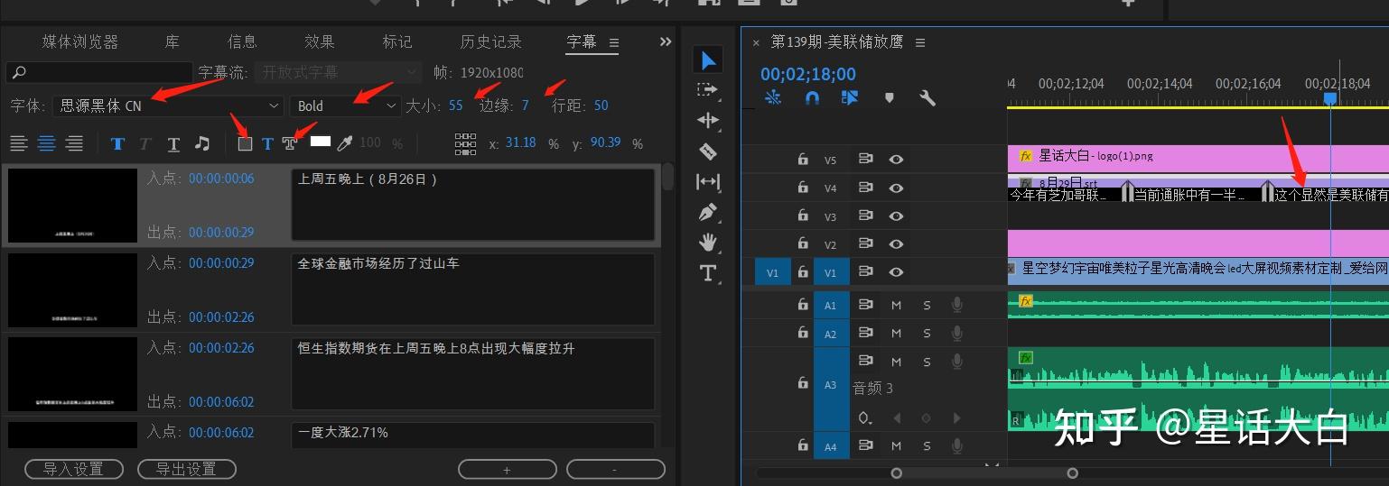 在这个字幕选项卡里,可以选择字幕的字体,记得用“思源黑体”,可以修改字体大小、样式,最重要的是,可以给字体加上边缘,这样可以让字幕更加清晰。