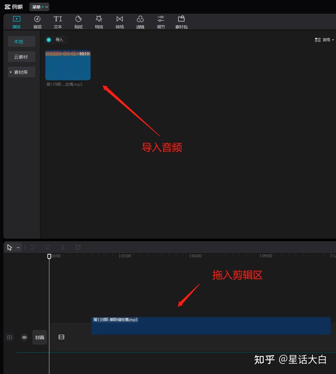 我们把之前导出的MP3文件,直接拖入剪辑区里。