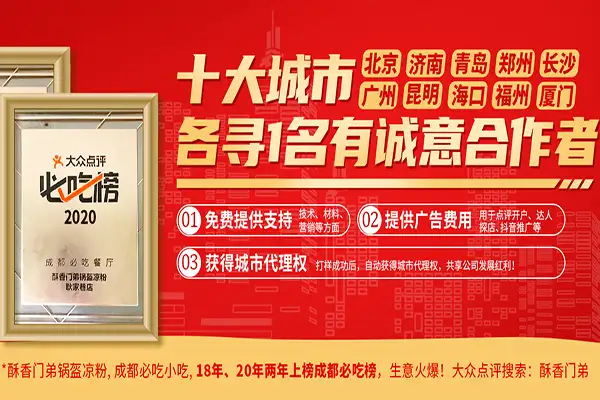 成都酥香门第餐饮管理有限公司成立于2016年,主要经营四川特色小吃南充锅盔夹凉粉,2017年在成都耿家巷开设了第一家自营店,酥香门弟锅盔夹凉粉小吃店,迅速受到消费者的喜爱,在成都这个国际美食之都中,酥 … [ 详情 ]