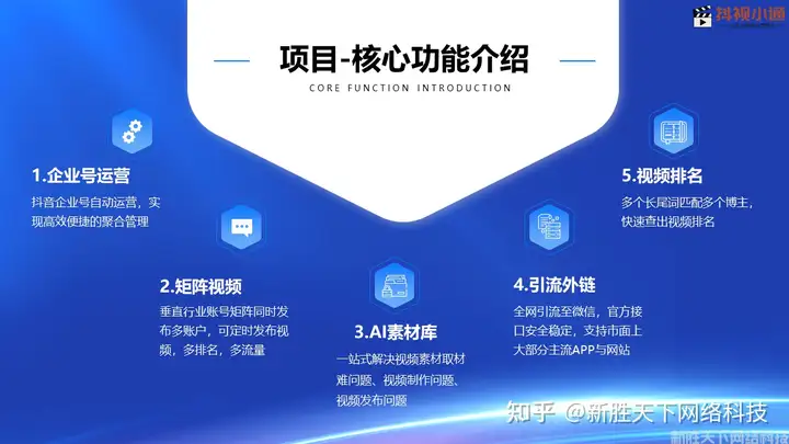 抖视小通除了智能云剪辑板块之外,还配备了企业号运营、矩阵视频、AI素材库、全网外链引流工具、视频seo排名优化等多个板块,真正解决从视频发布到落地引流至微信的闭合营销流程,为短视频内容营销提供一站式解决方案!