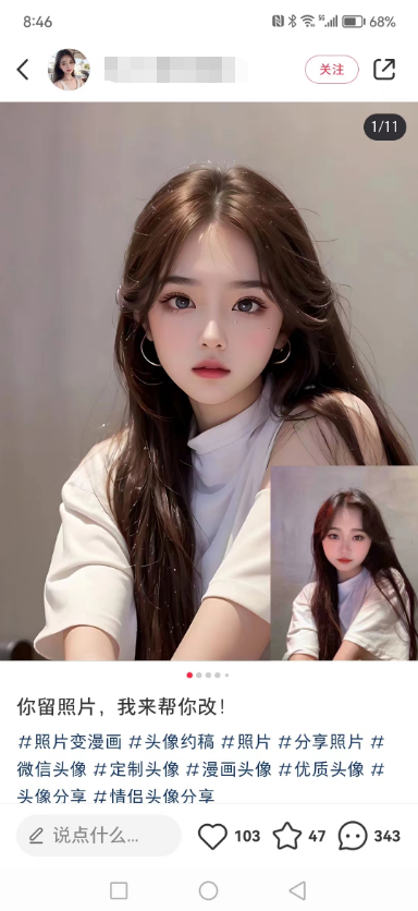 ![图片[2]-小红书AI漫改项目,软件一键改图吸引女大学生宝妈,每天10分钟发图片,日入500+-阿灿说钱](https://www.yiming818.com/wp-content/uploads/2fc05417d121.png)