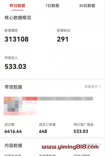 坑xx,年前弄的号,另外2个不怎么样,就这个好点(佣金比太低,抖x这个数据会翻翻,反正是捡,多平台不多)。没什么奇淫妙技,基本就瞎猫死耗子,参考《新手项目:1天赚1231.52元,简单人人可上车(附:佣金比18%,45%怎么找?)》。