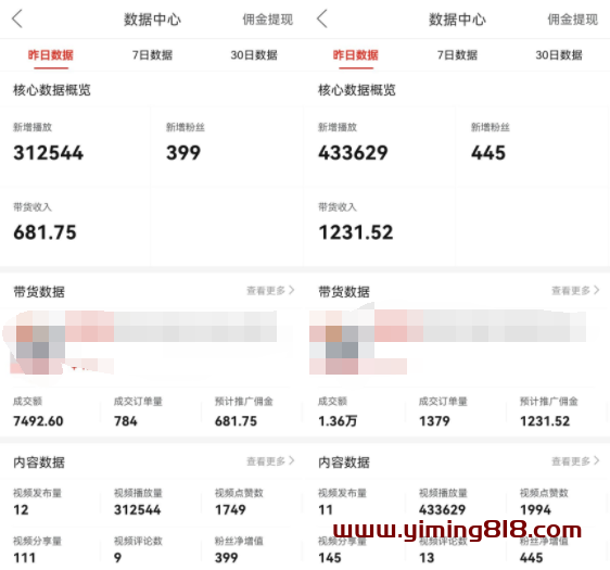 多多带货,认证2个号,数据实在太惨,惨得我都不好意思截图(So,实在喜欢不起来)。包括此号,扣除爆款,一天也就20左右。