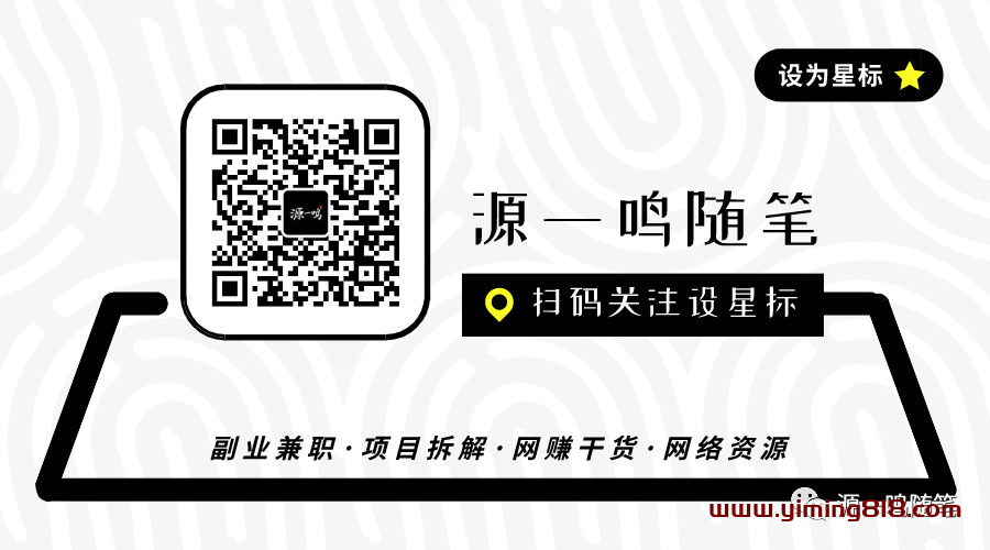 大家好,我是源一鸣;更多网络副业项目,欢迎浏览收藏我的网站一鸣资源网www.yiming818.com