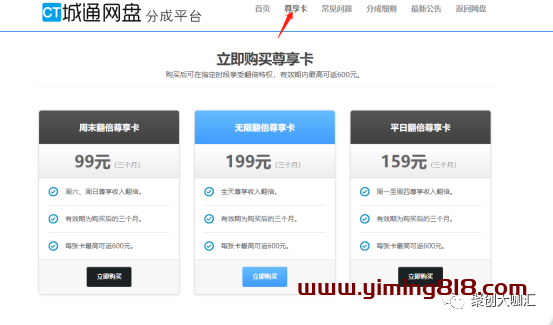 进去后可以看到平台相关的规则,分成细则,尊享卡等