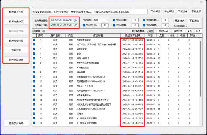 一款可以批量解析下载抖音视频的软件,下载下来的都是高清无水印视频。