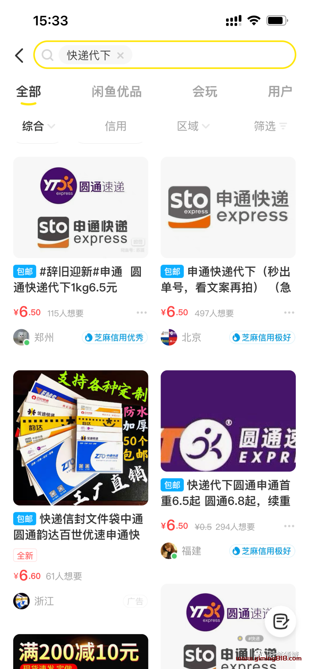 为了让大家对这个项目有个初步了解,大家可以去某宝或者某鱼搜索快递代下关键词,会出来如下两个图片