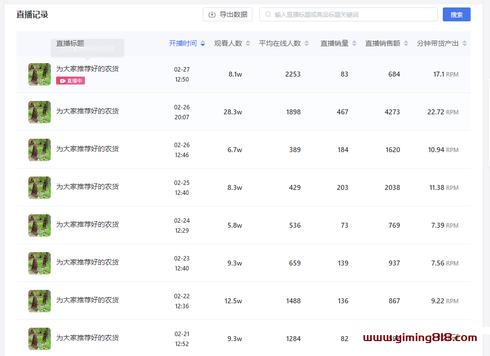 同类的直播间我们也搜索了一些进行研究,几乎差不多的套路、差不多的数据,所以我最后就总结一句话:这种玩法真的可行,尤其是直接通过直播起号以及不会制作视频或者没有更多精力制作短视频的朋友去玩!直播时的视频找人一次性拍好,剩下的时间就是每天开播就好了。