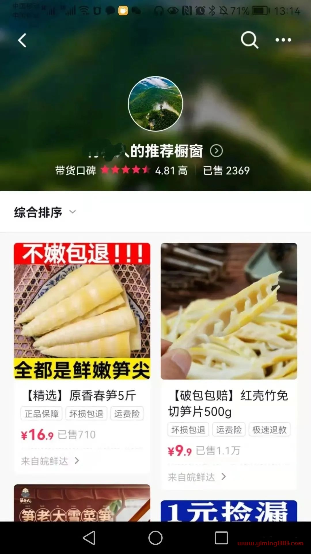 这是乙一个卖笋变现的账号,我当时刷到的时候他的橱窗销量2000多单。