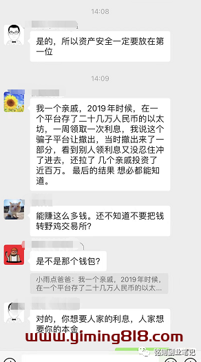 事情是这个样的,就是那天在一个我在币圈的一个社群,有个群友说,自己的亲戚,买资金盘,被骗了,一开始怎么劝也不听,还拉着其他亲戚玩,最后崩盘了