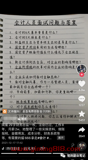 大家可以看看这个案例,是一个做财会的账号,现在大学学会计的女生很多,毕业后做会计类工作的人也自然不少,这个账号就是精准的做这种人群,实现引流的