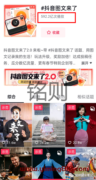 所以如果你对短视频不太行,不如试试抖音图文,只需要发几张图片,然后配上音乐和文案,就是一个视频,就可能获得几十万的播放,实现引流和变现