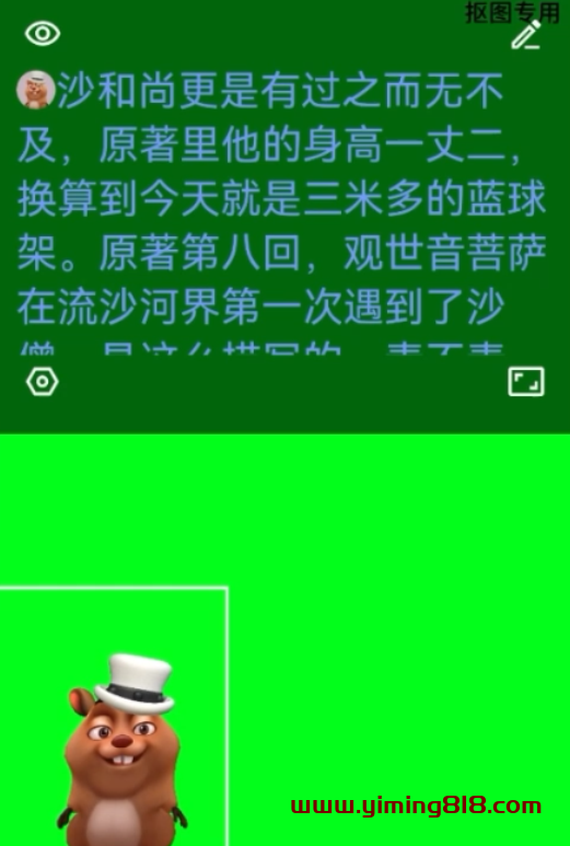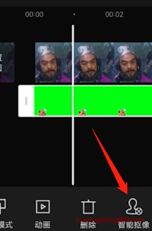 视频录制好之后,我们可以把视频放到剪映里边,剪映里边有一个智能抠像,用剪映里边的智能抠像工具,把绿幕抠掉,然后跟影视素材进行叠加。