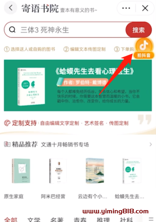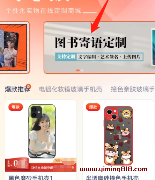 首页,有一个叫图书寄语定制,我们点这个地方,然后进入到里面之后,我们会看到各种各样可以带的书籍。
