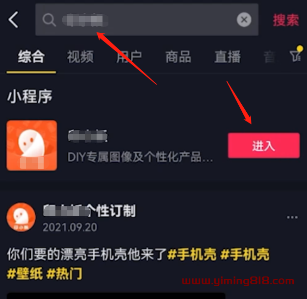 首先我们可以在抖音搜索框里边输入平台的名字,也就是这款小程序。