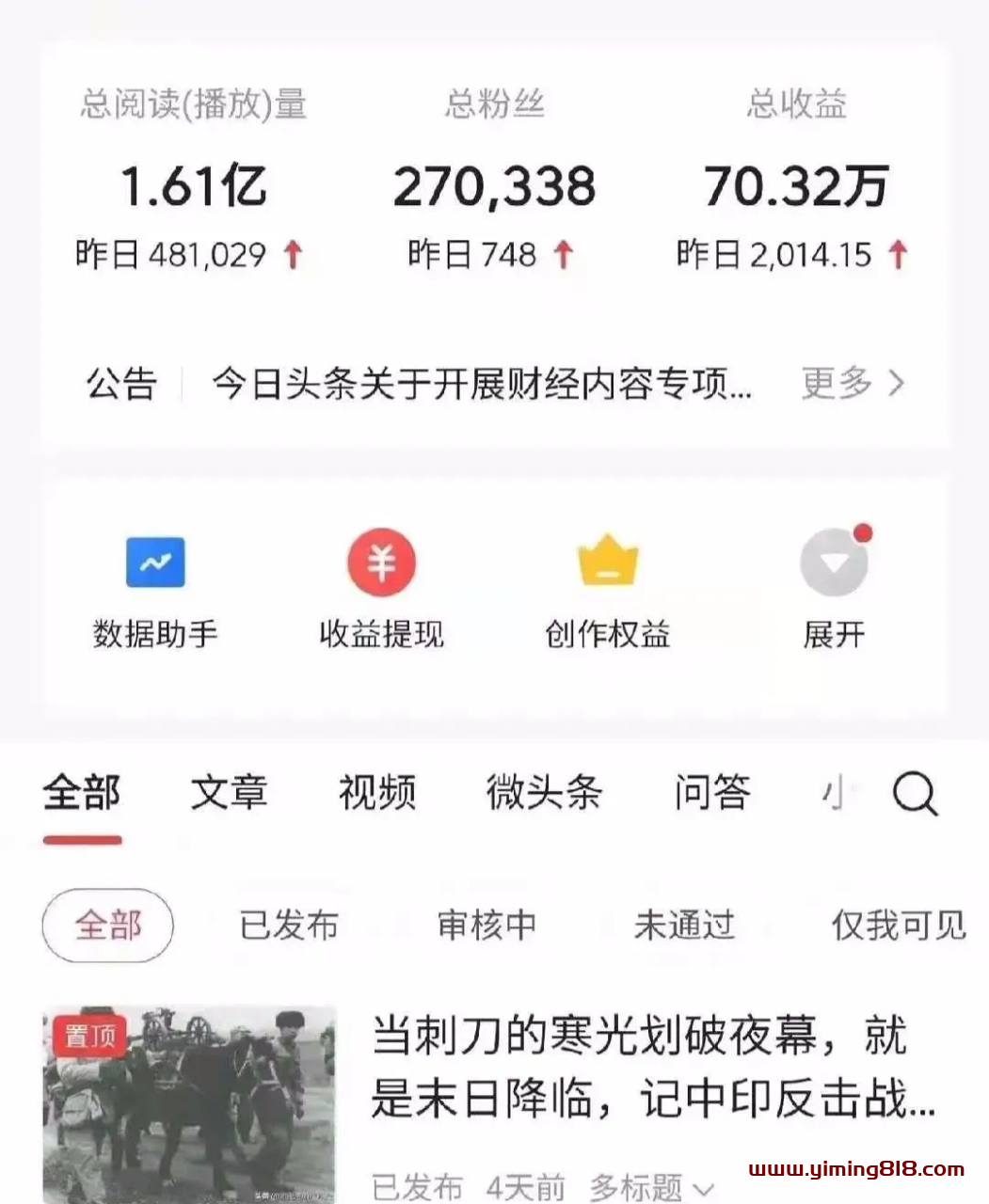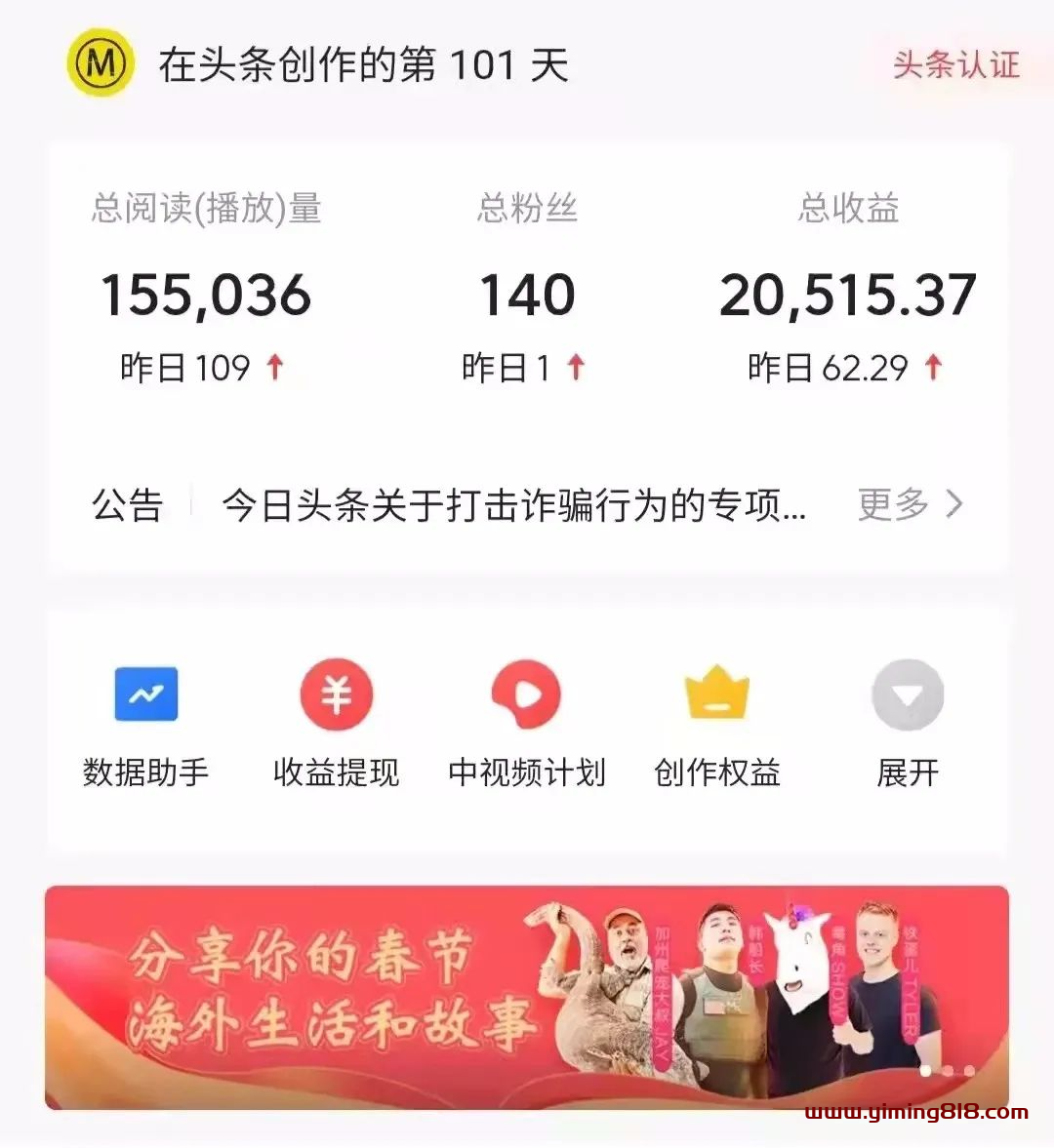 一平台的扶持,平台给予达人的流量扶持。二是3个平台同步,抖音,西瓜,今日头条,平台按照这几个播放量的总和来计算,懂行的人早已月入十万+。